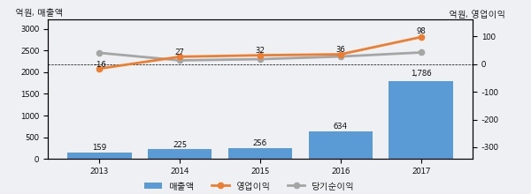 최근 3년간의 실적을 살펴보면 안정적 성장세를 보이고 있다. 최근 3년간 매출로 볼 때 매년 꾸준히 증가하고 있고 그 증가폭도 확대되고 있다.