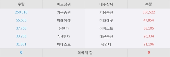 이 시각 주요 거래원은 미래에셋, 키움증권, 이베스트 등이 매수 상위 창구에 자리하고 있다.