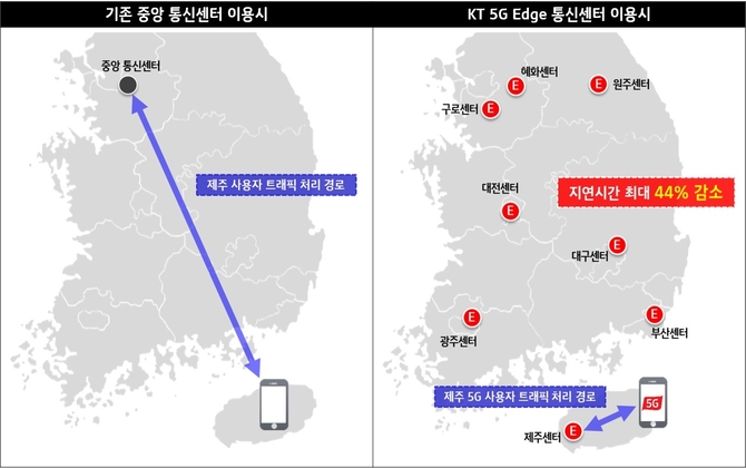 실제로 제주도에서 KT 5G를 이용한다면 제주에 구축한 에지 통신센터를 통해 기존 LTE보다 최대 44% 빠른 인터넷 접속 서비스를 경험할 수 있다.