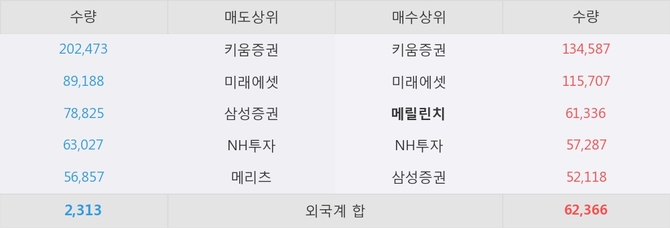 거래원 동향은 메릴린치, 미래에셋, NH투자 등이 매수 상위 목록에 나타나고 있다.
