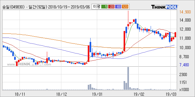 승일의 2017년 매출액은 전년대비 -1.9% 줄어든 1358억원이고, 영업이익 역시 전년대비 -34.6% 줄어든 38억원을 기록했다. 이 회사의 매출액 증감률과 영업이익 증감률은 각각 코스닥 하위 32%, 하위 34%에 해당된다.