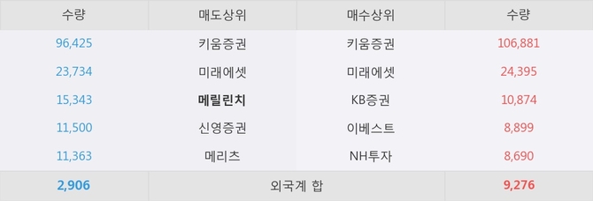 거래원 동향은 미래에셋, NH투자 등이 매수 상위 목록에 나타나고 있다. 한편, 매도 창구 상위에는 메릴린치가 눈에 띄고 있다.