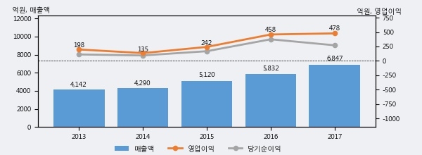 최근 3년간의 실적을 살펴보면 안정적 성장세를 보이고 있다. 최근 3년간 매출로 볼 때 매년 꾸준히 증가하고 있고 그 증가폭도 확대되고 있다.