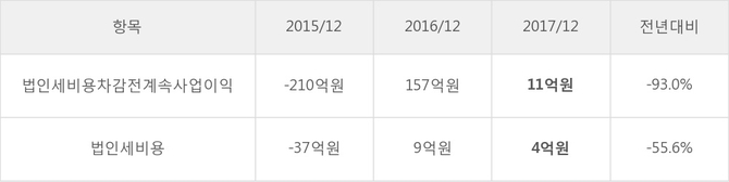[표]우진플라임 법인세 납부 추이