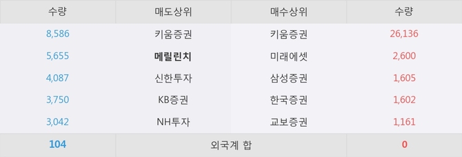 거래원 동향은 미래에셋, 삼성증권 등이 매수 상위 목록에 나타나고 있다. 한편, 매도 창구 상위에는 메릴린치가 눈에 띄고 있다.