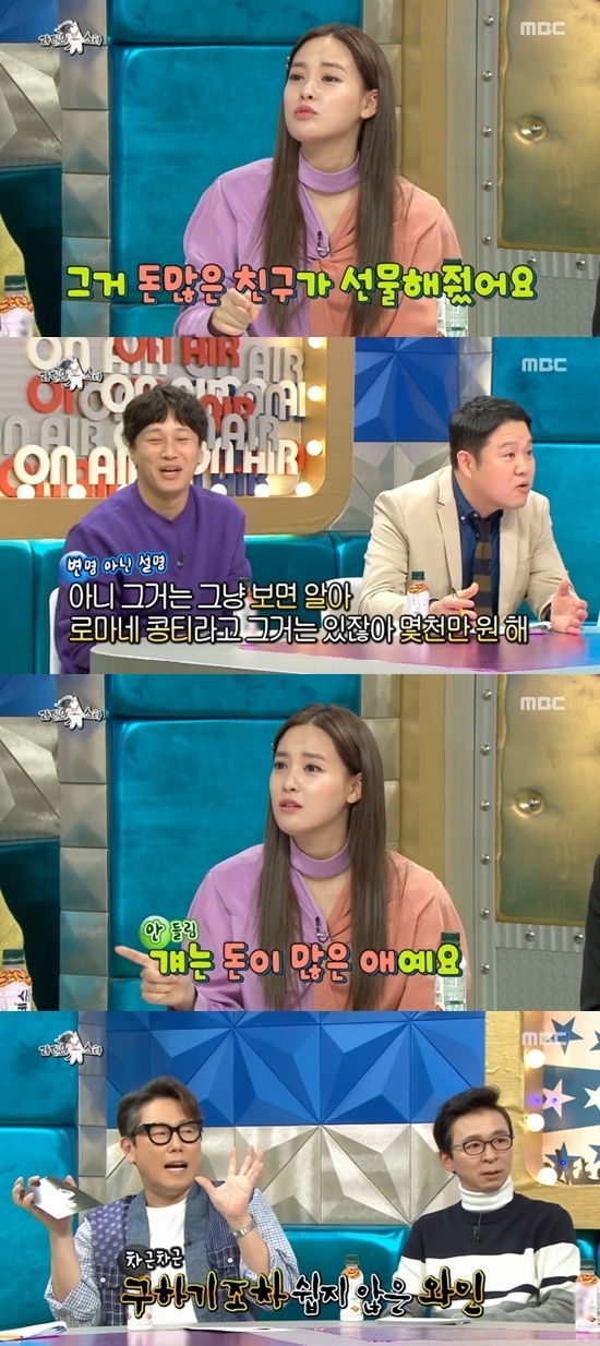 김구라가 "전세계에서 제일 비싸다. 몇천만원 해"라고 말하자 이주연은 알아챘다는 듯 "그거 그래요? 그거 친구한테 선물 받은 적 있어요"라고 이야기했다.