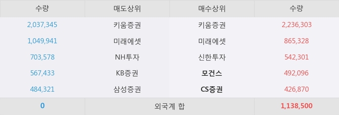 거래원 동향은 모건스, CS증권, 미래에셋 등이 매수 상위 목록에 위치하고 있다.
