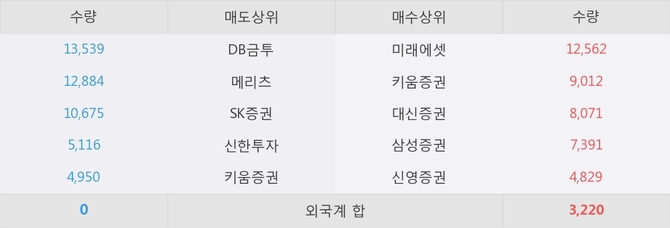이 시각 주요 거래원은 메리츠, DB금투, SK증권 등이 매도 상위 창구에 자리하고 있다.