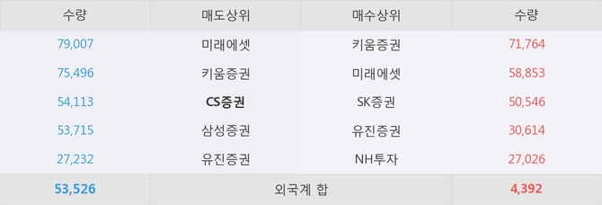 거래원 동향은 미래에셋, NH투자 등이 매수 상위 목록에 나타나고 있다. 한편, 매도 창구 상위에는 CS증권이 눈에 띄고 있다.