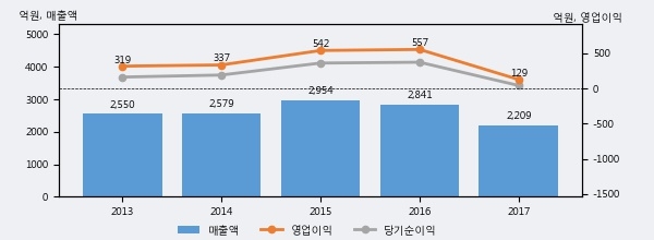 [그래프]대림씨엔에스 연간 실적 추이
