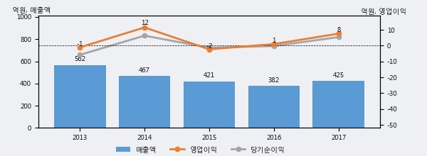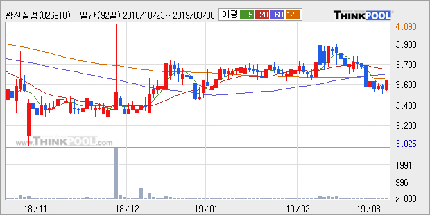 광진실업의 2017년 매출액은 전년대비 11.1% 늘어난 425억원이고, 영업이익 또한 전년대비 660.0% 늘어난 8억원을 기록했다. 이 회사의 매출액 증감률과 영업이익 증감률은 각각 코스닥 상위 41%, 상위 2%에 해당된다.