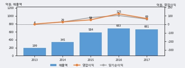 유니테크노의 2017년 매출액은 661억으로 전년대비 -3.2% 하락했고, 영업이익 역시 69억으로 전년대비 -44.8% 하락했다. 이 회사의 매출액 증감률과 영업이익 증감률은 각각 코스닥 하위 30%, 하위 30%에 해당된다.