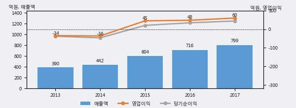 최근 3년간의 실적을 살펴보면 안정적 성장세를 보이고 있다. 최근 3년간 매출로 볼 때 매년 꾸준히 증가하고 있다. 다만 최근에 그 증가폭이 다소 감소하고 있다.