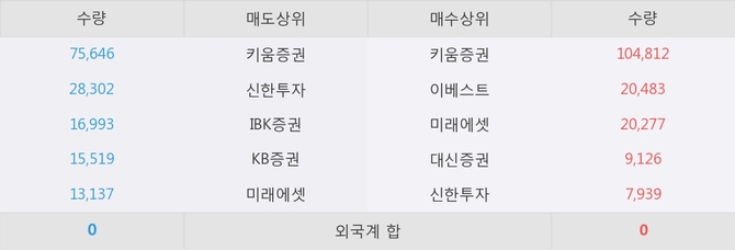 이 시각 주요 거래원은 미래에셋, 키움증권, 이베스트 등이 매수 상위 창구에 자리하고 있다.