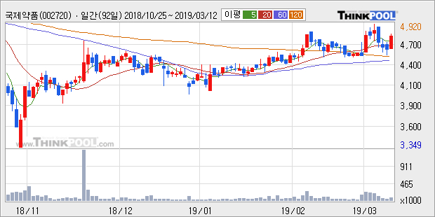 국제약품은 2017년 매출액 1233억원과 영업이익 26억원을 기록했다. 전년대비 매출은 2.2% 상승했고, 영업이익은 -35.5% 하락했다. 이 회사의 매출액 증감률과 영업이익 증감률은 각각 코스피 하위 36%, 하위 26%에 해당된다.