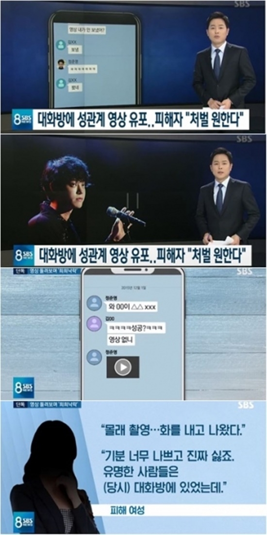 11일 SBS는 정준영이 지인들이 참여한 카톡 단체방 등에서 성관계 동영상을 공유했다고 보도하며 대화 내용을 공개했다.