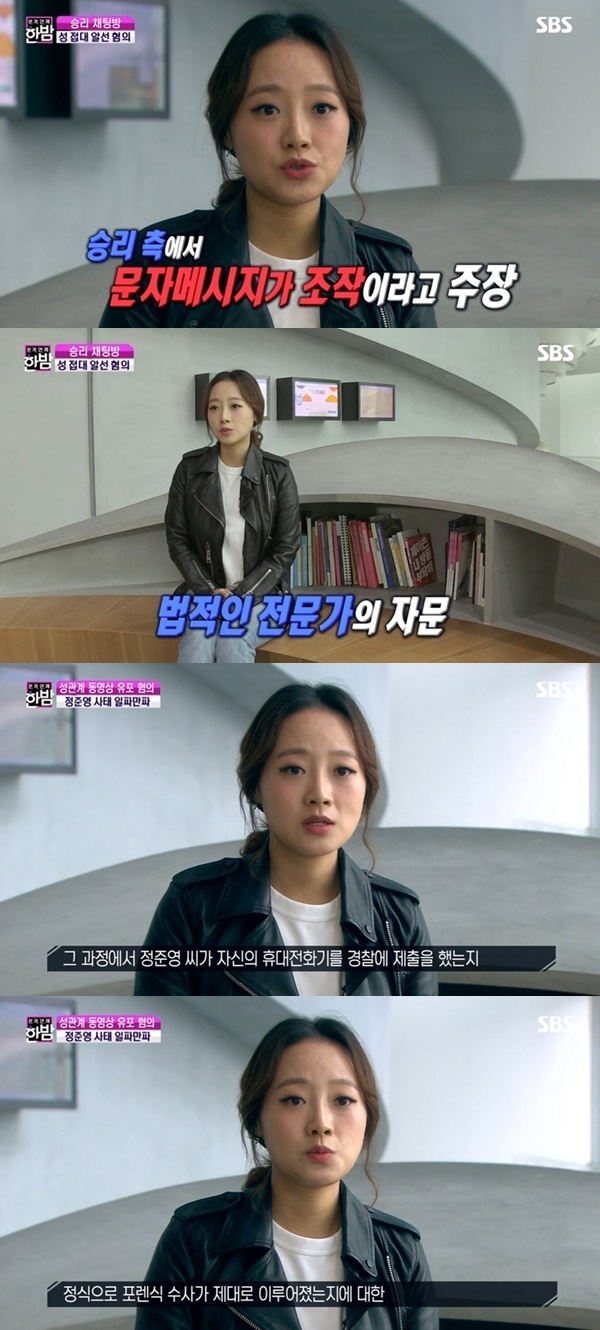 12일 SBS '본격 연예 한밤'에선 빅뱅 승리의 클럽 버닝썬 성 접대 지시 의혹을 최초 보도했던 SBS FunE 강경윤 기자가 출연, 보도 내용과 관련된 조사 과정에 대해 밝혔다.