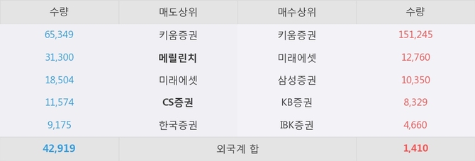 거래원 동향은 미래에셋, 삼성증권 등이 매수 상위 목록에 나타나고 있다. 한편, 매도 창구 상위에는 메릴린치와 CS증권이 눈에 띄고 있다.