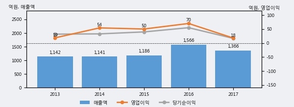 오픈베이스의 2017년 매출액은 전년대비 -12.8% 줄어든 1366억원이고, 영업이익 역시 전년대비 -74.0% 줄어든 18억원을 기록했다. 이 회사의 매출액 증감률과 영업이익 증감률은 각각 코스닥 하위 16%, 하위 21%에 해당된다.