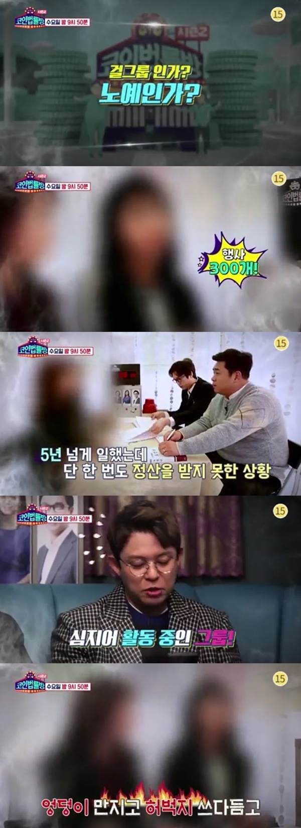 13일 KBS JOY '코인법률방2'엔 현직 걸그룹이 출연, 소속사와 계약 후 금전적인 지원은 물론 의식주와제대로된 급여도 받지 못했다고 호소해 눈길을 끌었다.