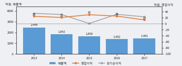 부국철강의 2017년 매출액은 전년대비 4.2% 늘어난 1461억원이고, 영업이익은 전년대비 -49.6% 줄어든 13억원을 기록했다. 이 회사의 매출액 증감률과 영업이익 증감률은 각각 코스피 하위 45%, 하위 19%에 해당된다.