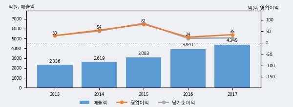 최근 3년간의 실적을 살펴보면 안정적 성장세를 보이고 있다. 최근 3년간 매출로 볼 때 매년 꾸준히 증가하고 있다. 다만 최근에 그 증가폭이 다소 감소하고 있다.