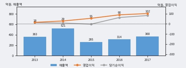 인크로스는 2017년 매출액 368억원과 영업이익 102억원을 기록했다. 전년대비 매출은 16.9%, 영업이익은 13.9% 각각 상승했다. 이 회사의 매출액 증감률과 영업이익 증감률은 각각 코스닥 상위 33%, 상위 43%에 해당된다.