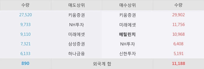 거래원 동향은 메릴린치, 미래에셋, NH투자 등이 매수 상위 목록에 나타나고 있다.