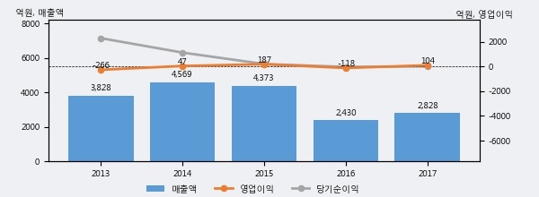 웅진은 2017년 매출액 2828억원과 영업이익 104억원을 기록했다. 전년대비 매출은 16.4% 상승했고, 영업이익은 흑자전환했다. 이 회사의 매출액 증감률과 영업이익 증감률은 각각 코스피 상위 22%, 상위 8%에 해당된다.