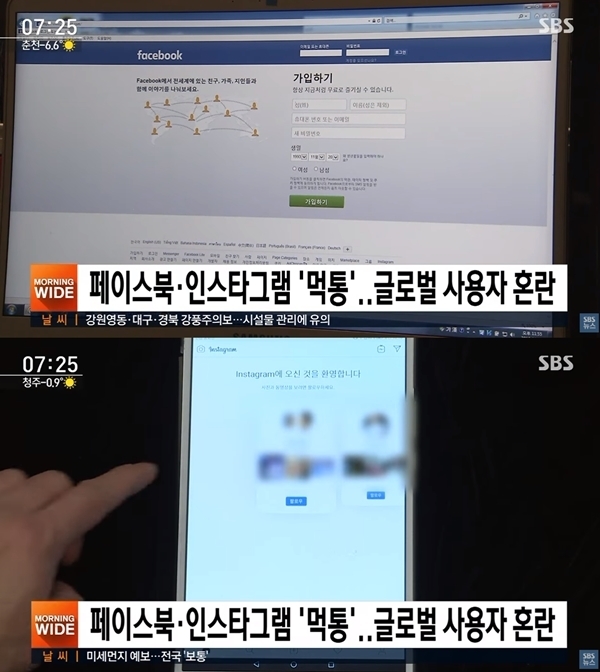 페이스북은 PC버전의 메신저 기능 오류에 그쳤으나 인스타그램의 경우 피드 새로 고침, 계정 접속 등 전체적인 이용의 불가한 상태로 알려졌다.
