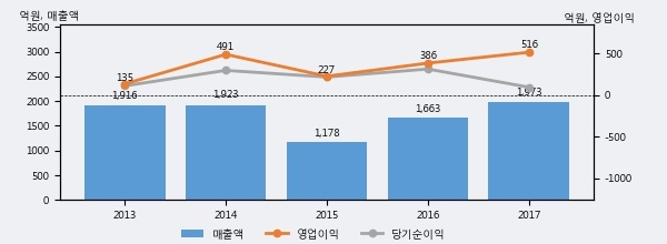 최근 실적을 살펴보면 2017년 매출액이 최근 5년 중 가장 높은 실적을 기록했음을 알 수 있다. 이전 최고 실적이었던 2014년 보다도 2.6%(49억 9천만원) 늘어난 것으로 나타났다.