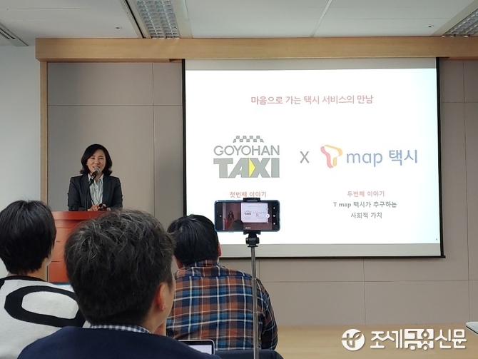 SK텔레콤은 14일 오전 서울 중구 을지로 삼화타워에서 기자간담회를 갖고 청각장애 택시기사들의 근무환경을 개선하고 수입을 높여주기 위한 전용 ‘T맵 택시’ 애플리케이션을 출시했다고 밝혔다.