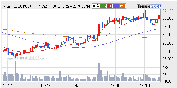 S&T모티브의 2017년 매출액은 전년대비 -1.4% 줄어든 1조 1375억원이고, 영업이익은 전년대비 35.0% 늘어난 967억원을 기록했다. 이 회사의 매출액 증감률과 영업이익 증감률은 각각 코스피 하위 25%, 상위 28%에 해당된다.