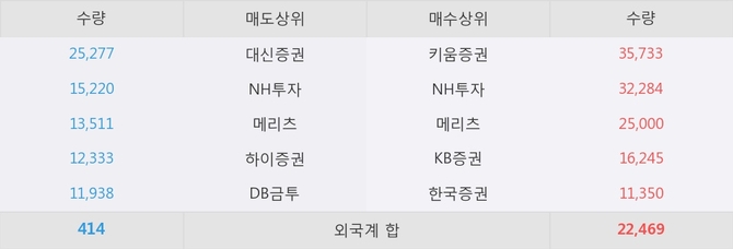 거래원 동향은 NH투자, 메리츠 등이 매수 상위 목록에 나타나고 있다.