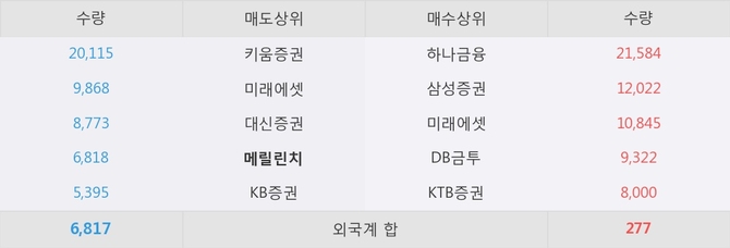 거래원 동향은 하나금융, 삼성증권, 미래에셋 등이 매수 상위 목록에 나타나고 있다. 한편, 매도 창구 상위에는 메릴린치가 눈에 띄고 있다.