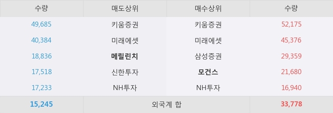 거래원 동향은 메릴린치, 미래에셋, NH투자 등이 매도 상위 목록에 나타나고 있다. 한편, 매수 창구 상위에는 모건스가 눈에 띄고 있다.