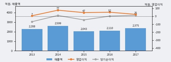 혜인의 2017년 매출액은 전년대비 12.6% 늘어난 2375억원이고, 영업이익은 전년대비 -51.5% 줄어든 25억원을 기록했다. 이 회사의 매출액 증감률과 영업이익 증감률은 각각 코스피 상위 31%, 하위 18%에 해당된다.
