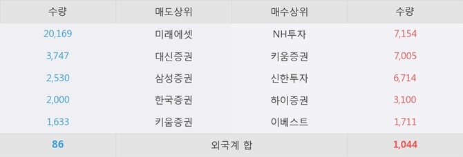 거래원 동향은 미래에셋, 삼성증권 등이 매도 상위 목록에 나타나고 있다.