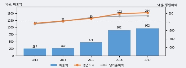 최근 3년간의 실적을 살펴보면 안정적 성장세를 보이고 있다. 최근 3년간 매출로 볼 때 매년 꾸준히 증가하고 있다. 다만 최근에 그 증가폭이 다소 감소하고 있다.