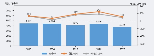 에이블씨엔씨의 2017년 매출액은 3733억으로 전년대비 -14.1% 하락했고, 영업이익 역시 112억으로 전년대비 -53.8% 하락했다. 이 회사의 매출액 증감률과 영업이익 증감률은 각각 코스피 하위 6%, 하위 17%에 해당된다.