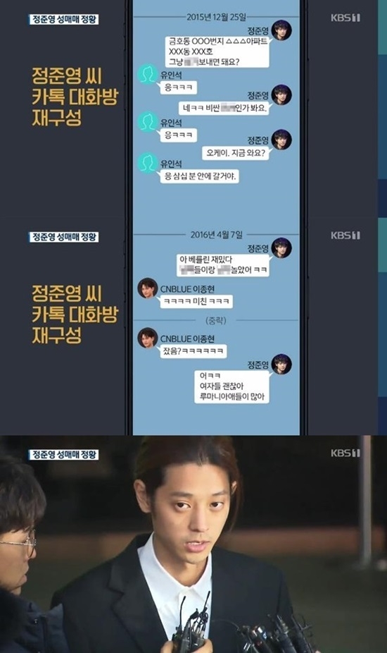15일, KBS 취재진이 공개한 유인석과 정준영의 모바일 메신저 대화 내용에는 이들이 성매매를 한 것으로 짐작되는 정황이 담겨 탄식을 자아냈다.