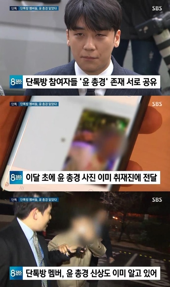 승리의 모바일 메신저 대화방 멤버들은 윤총경의 사진과 경력을 공유하며 친분을 과시했던 것으로 밝혀졌다.