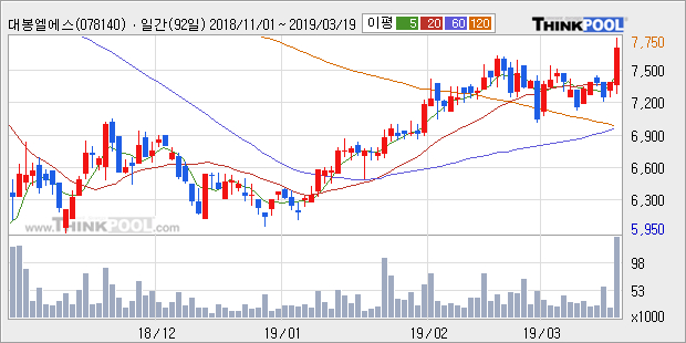 [그래프]대봉엘에스 일봉 차트