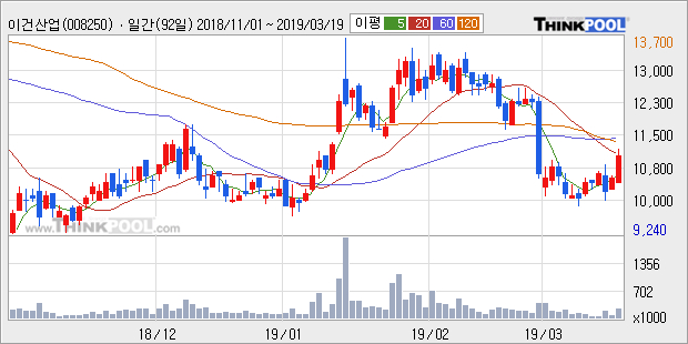 이건산업의 2017년 매출액은 전년대비 2.9% 늘어난 2987억원이고, 영업이익은 전년대비 -10.2% 줄어든 160억원을 기록했다. 이 회사의 매출액 증감률과 영업이익 증감률은 각각 코스피 하위 38%, 하위 43%에 해당된다.