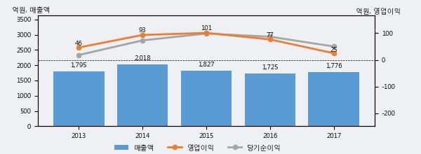 DSR제강은 2017년 매출액 1776억원과 영업이익 25억원을 기록했다. 전년대비 매출은 2.9% 상승했고, 영업이익은 -67.6% 하락했다. 이 회사의 매출액 증감률과 영업이익 증감률은 각각 코스피 하위 39%, 하위 14%에 해당된다.