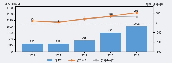 최근 3년간의 실적을 살펴보면 안정적 성장세를 보이고 있다. 최근 3년간 매출로 볼 때 매년 꾸준히 증가하고 있다. 다만 최근에 그 증가폭이 다소 감소하고 있다.