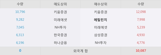 거래원 동향은 메릴린치, 미래에셋, 삼성증권 등이 매수 상위 목록에 나타나고 있다.