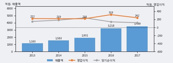 최근 3년간의 실적을 살펴보면 안정적 성장세를 보이고 있다. 최근 3년간 매출로 볼 때 매년 꾸준히 증가하고 있다. 다만 최근에 그 증가폭이 다소 감소하고 있다.