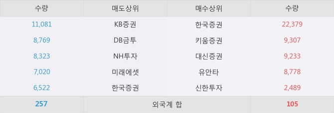 현재 거래원 동향은 한국증권, 키움증권, 대신증권 등이 매수 상위 목록에 나타나고 있다.