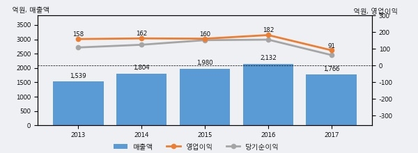 현대공업의 2017년 매출액은 1766억으로 전년대비 -17.1% 하락했고, 영업이익 역시 91억으로 전년대비 -50.0% 하락했다. 이 회사의 매출액 증감률과 영업이익 증감률은 각각 코스닥 하위 12%, 하위 28%에 해당된다.